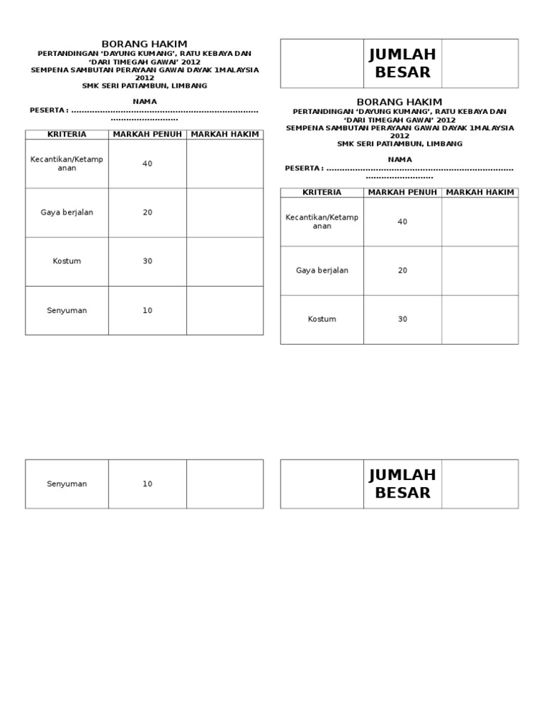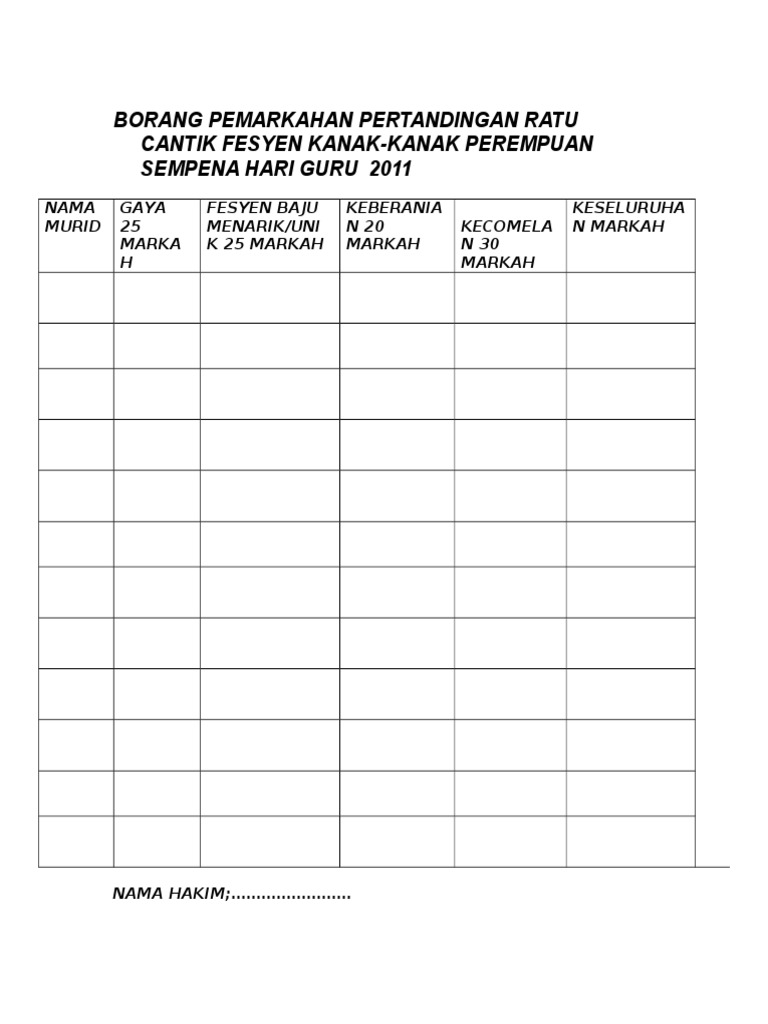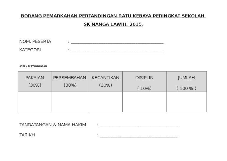 Borang Markah Pertandingan Pakaian Beragam Docx Otosection