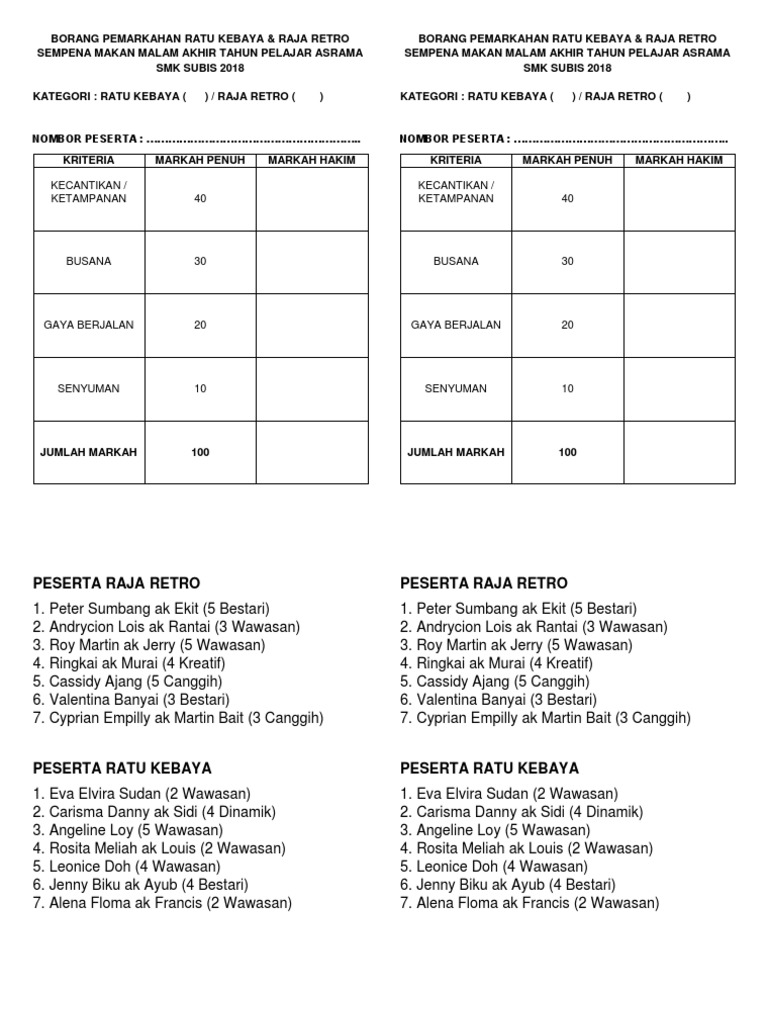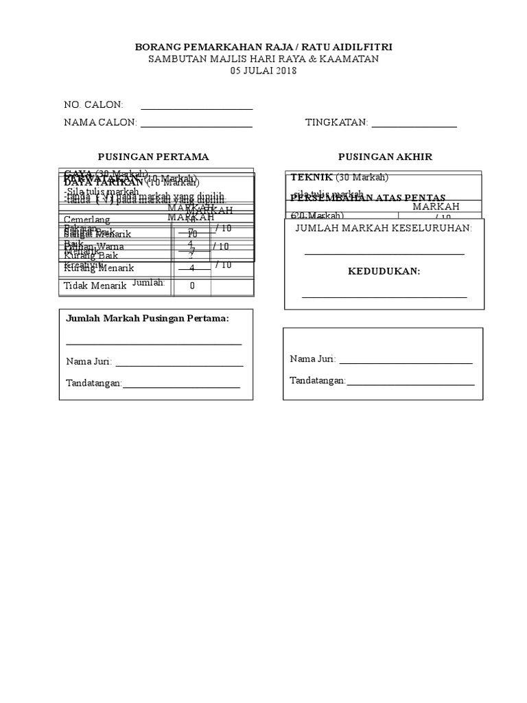 Contoh Borang Pertandingan Raja Ratu Aidilfitri 2018 Penilaian Pdf